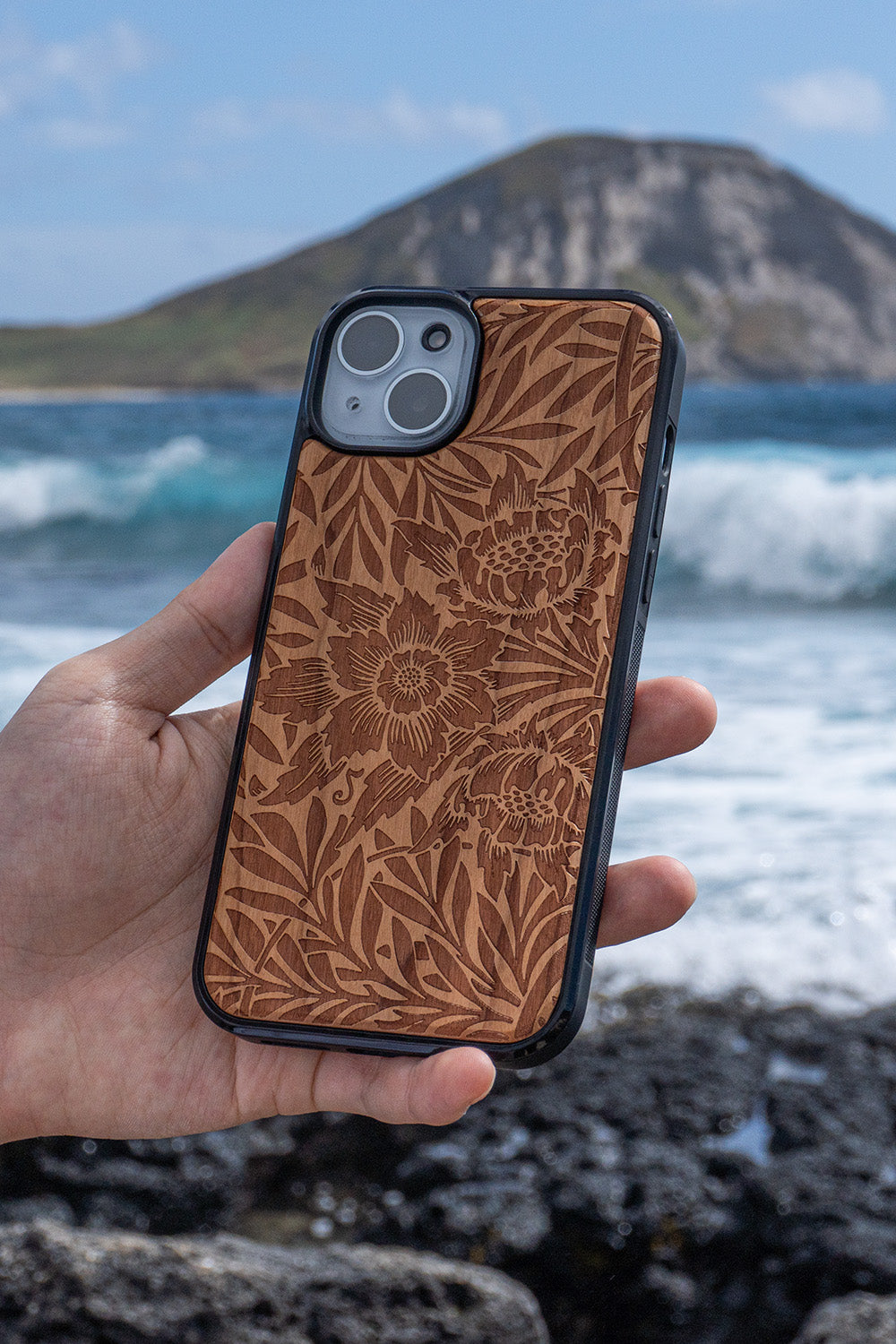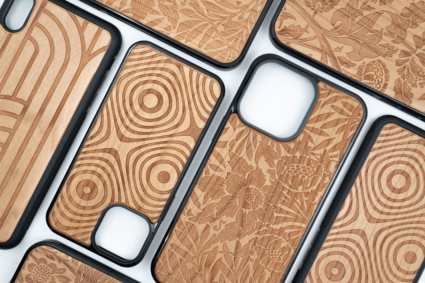 Our phone cases showcase intricately engraved floral and patterned designs on wood, providing a sophisticated and stylish alternative to standard plastic cases.